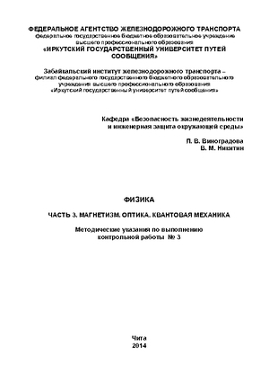 | Филиппов С.А. Тяговые и трансформаторные подстанцииГод издания: 2016 Описание: методические указания по выполнению лабораторных работ № 3,4 |  | Иванова Т.В., Степанов В.В., Четвериков С.В. Восстановление деталей сваркой и наплавкойГод издания: 2014 Описание: учебное пособие Ключевые слова: сварка, наплавка, сварка трением, ультразвуковая сварка, восстановление деталей вагонов, практические работы |  | Серых Е.В., Губанова Ю.В. Бухгалтерское делоГод издания: 2015 Описание: методические указания по выполнению контрольной работы № 2 |  | Никитин В.М., Виноградова Л.В. ФизикаГод издания: 2014 Описание: методическое пособие по выполнению контрольной работы |  | Никитин В.М., Виноградова Л.В. Физика. Часть 1. МеханикаГод издания: 2014 Описание: методические указания по выполнению контрольной работы № 1 |  | Никитин В.М., Виноградова Л.В. Физика. Часть 3. ОптикаГод издания: 2014 Описание: методические указания по выполнению контрольной работы № 3 |  | Никитин В.М., Виноградова Л.В. Физика. Часть 4. Квантовая механикаГод издания: 2014 Описание: методические указания по выполнению контрольной работы № 4 |  | Никитин В.М., Виноградова Л.В. Физика. Часть 1. Механика. Молекулярная физика и термодинамикаГод издания: 2014 Описание: методические указания по выполнению контрольной работы № 1 |  | Никитин В.М., Виноградова Л.В. Физика. Часть 4. Оптика. Квантовая механикаГод издания: 2014 Описание: методические указания по выполнению контрольной работы № 4 |  | Никитин В.М., Виноградова Л.В. Физика. Часть 2. Молекулярная физика. ТермодинамикаГод издания: 2014 Описание: методические указания по выполнению контрольной работы № 2 |  | Никитин В.М., Виноградова Л.В. Физика. Часть 2. Электричество и магнетизмГод издания: 2014 Описание: методические указания по выполнению контрольной работы № 2 |  | Никитин В.М., Виноградова Л.В. Физика. Часть 3. Магнетизм. Оптика. Квантовая механикаГод издания: 2014 Описание: методические указания по выполнению контрольной работы № 3 |  | Никитин В.М., Виноградова Л.В. Физика. Часть 2. Молекулярная физика. Термодинамика. Электростатика. Постоянный электрический токГод издания: 2014 Описание: методические указания по выполнению контрольной работы № 2 |  | Соколова О.В. Механика грунтовГод издания: 2015 Описание: методические указания по выполнению контрольной работы |